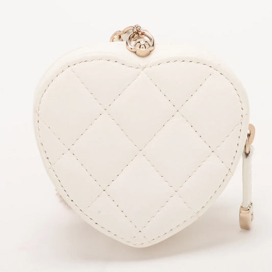 Pre-owned Chanel Love Heart Chain Necklace Zip Coin Purse