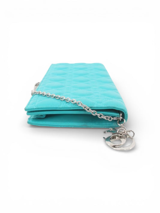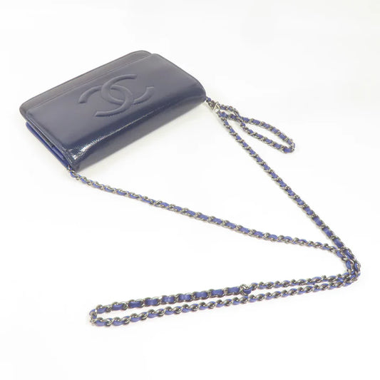Pre-owned CHANEL WOC Wallet On Chain Shoulder Bag Leather Blue