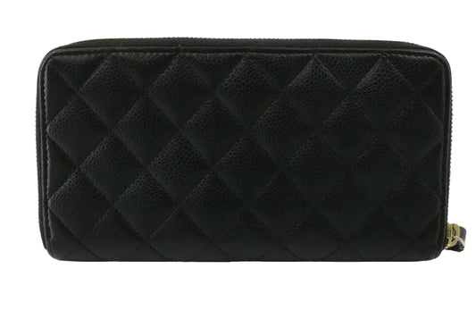 Pre-owned Chanel Matelasse Caviar Leather Round Zipper Long Wallet