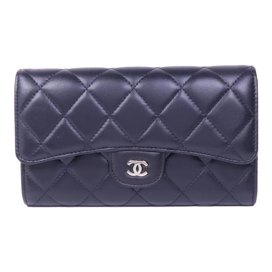 Pre=owned CHANEL Long Wallet Lambskin Leather Black