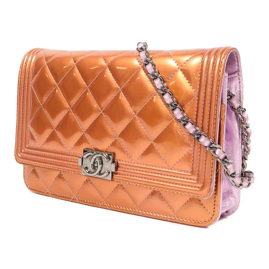 Pre-owned CHANEL Boy Chanel WOC Patent Leather Orange/Purple