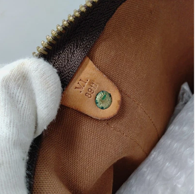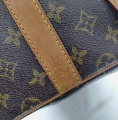 The bag is in used condition with visible signs of wear throughout. The monogram canvas exterior remains in good shape, but the vachetta leather parts show rubs, scratches, and stains, particularly on the bottom and shoulder areas. The shoulder strap and handles also show some spots and surface wear. The interior has minor stains and light rubbing, but no major damage or odors. The zipper is fully functional, and the metal hardware shows partial tarnishing and surface scratches consistent with age.