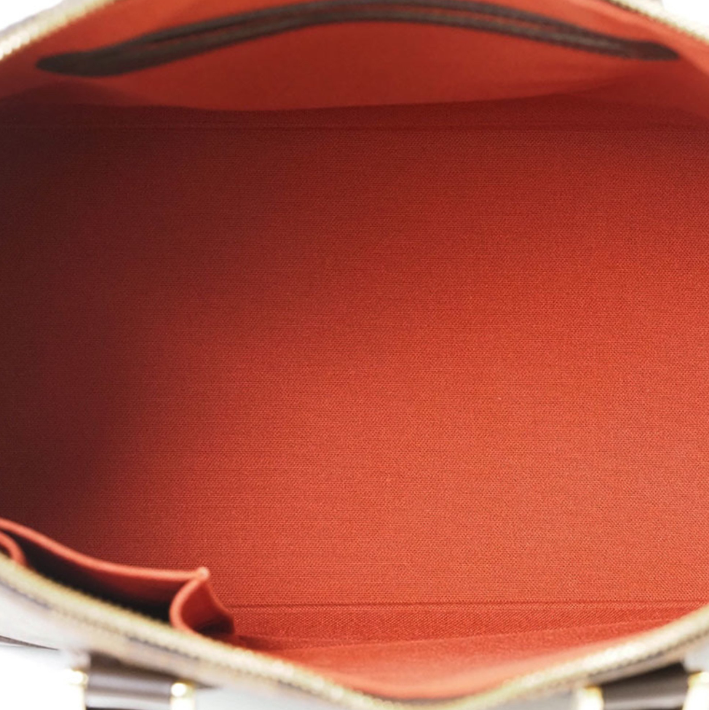 This preowned Louis Vuitton Damier Ebene GM Alma is in very good condition, showing minor signs of wear such as faint stains, light rubbing, and slight scratches on metal fittings. Measuring 31 cm wide, 24 cm high, and 17 cm deep, this brown canvas bag exhibits minimal traces of use on the exterior, interior, handles, and corners, maintaining an overall well-preserved appearance. No accessories or serial number are included with this piece.